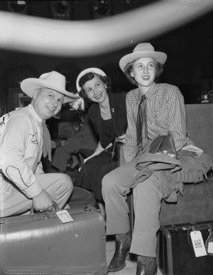 Ready to board a special train for the Lions International convention were Gene Carter, a past president of the Seymour Lions Club and Zone 4 chairman, Mrs. Carter, and their daughter, 15. Published in Fort Worth Star-Telegram, morning edition July 15, 1950.