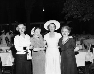 Minnie Carter standing with three women at the Texas Press Association Party.