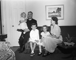 Rev. James Green and Mrs. Green, and their three children, Patricia Anne, James Roby and Mary Michael, left to right, are visiting the Rev. and Mrs. James P. DeWolfe, 4301 Southwest Blvd. Rev. Mr. Green, who is choir director of New York's Cathedral of St. John the Divine, is chaplain of the adult conference at Camp Crucis near Granbury. Published in the Fort Worth Star-Telegram evening edition, July 18, 1950.