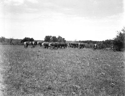 Image shows Bassel cattle herd grazing in pasture at Bell County ranch. Published in the Fort Worth Star-Telegram morning edition, September 3, 1950.