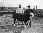 Image shows Perry Walker, Howard County 4-H, right and father with Hereford Bull that was purchased from Dorothea Griffin at Lawn. Published in the Fort Worth Star-Telegram morning edition, September 3, 1950.