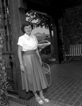 Image shows Miss Winifred Lyle standing outside on a patio. Miss Winifred Lyle, daughter of Dr. And Mrs. Judge Lyle, 3901 Westcliff Rd. South, will leave with a group for Miami, Florida, where they will spend three days before sailing to Havana to spend six days.