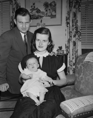 Dr. and Mrs. James McBride and son, James Hampton of New York are visiting his parents, Mr. and Mrs. James McBride, 3716 Bellaire, Dr., N. Published in Fort Worth Star-Telegram, morning edition July 26 1950.