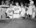 Shortstop Russ Rose, Pitcher Pat McGlothin and Third baseman Don Hoak, left to right, combined with Bob Bundy and Ken Staples to give Fort Worth 3-2 victory in 14 innings in the game at La Grave Field with Houston. Published in Fort Worth Star-Telegram evening edition July 26, 1950.