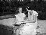 Stefa Humennyj, left, Ukranian student attending high school here, interrupts as English lesson before school to ask for help in learning American slang, which she finds difficult. Her teacher is a classmate, Yvonne Branham, daughter of Mr. and Mrs. R. G. Branham of 837 E. Jefferson. Published in the Fort Worth Star-Telegram morning edition, July 27, 1950.