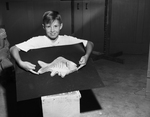 Tafford Blessine, 12, is shown displaying a sculpture of a fish that he made out of clay. Published in the morning edition, Aug 6, 1950.