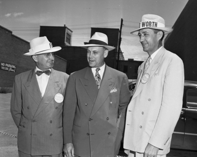 Al C. Donell, vice president of the Panhandle State Bank at Borger, formerly with the First National Bank at Fort Worth, center, visited with J. Homer Writer of the Western Fidelity Life Insurance Company, left, and Allen McMurray of the Continental National Bank, when the Fort Worth group stopped in Borger. Published in Fort Worth Star-Telegram morning edition July 31, 1950.