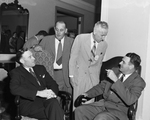 Shown are bits of the schedule of Fort Worth business men on their Chamber of Commerce-sponsored tour of West Texas and the Panhandle. R. Earl O'Keefe, president of the Amarillo Chamber of Commerce; Russell J. Howard of Southwestern Bell Telephone Company, Fort Worth; W. H. Kerr of the Panther City Office Supply Company, Fort Worth, and Amarillo Mayor E. H. (Gene) Klein. Published in Fort Worth Star-Telegram morning edition July 29, 1950.