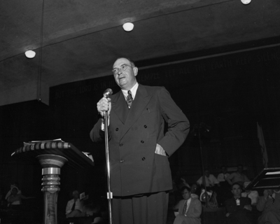 Mr. E. C. Pannell is shown speaking at a rump session of the Democratic party. Mr. Pannell served as temporary chairman for the regular session after the rump convention walked out. Published in the morning edition, July 30, 1950.