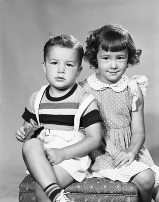 The image shows Gerry and Cynthia Ann Everett, children of Mr. and Mrs. G. O. Everett of Goodland, Kansas, formerly of Fort Worth. The photo was taken as the family visited the children's grandparents, Mr. and Mrs. D. P. Carter, of Route 1. Published in the evening edition July 31, 1950.