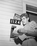 Robert "Pat" Biggers, age 22, of 1124 South Lake, is shown gazing at the Selective Service notice he received earlier in the week. Mr. Biggers was one of 450 1-A's that received their notice over the course of Monday and Tuesday that week. Published in the morning edition, August 1, 1950.