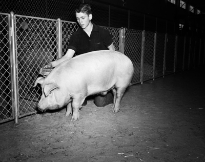 Jim Strickland, Arlington Future Farmers of America, and his champion barrow of the Tarrant County Junior Livestock.