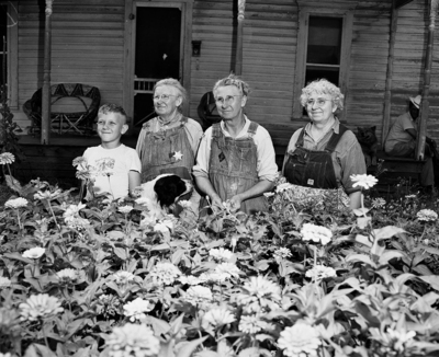 Image shows left to right, Michael Huggins, Gertrude , Hassie and Nola Doyle. Three Doyle sisters and great nephew posed outside their home near Slidell, Texas. Published in the Fort Worth Star-Telegram morning edition, September 3, 1950.