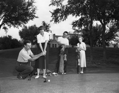 Enjoying spending their day on the golf course, this image shows Mr. and Mrs. Lacy Boggess, left, and Mr. and Mrs. Tom Maben, right. Published in the morning edition, August 6, 1950.