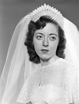 Miss Dorothy Louise Zachary and Paul Leonard Conant were married in North Side Church of Christ by Thomas Cambell, minister. After a short trip to celebrate their wedding, the couple would return to Fort Worth to build a home on Thannisch Street. The image shows the bride, sitting in her wedding dress. Published in the morning edition, August 6, 1950.
