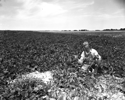Image shows H. R. Frost standing in his cream crowder pea crop field. Published in the Fort Worth Star-Telegram morning edition, October 1, 1950.