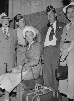 Red Wedgeworth of Pampa, second to the left, and Mrs. L. E. Anderson, center, of Amarillo were among the Panhandle's Khiva Temple arrivals for the conference.