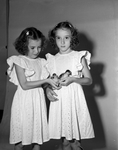 Image shows twin girls, Annette and Janette Douglas, holding baby ducks. The girls won the "most unusual" award at the recreation department pet show held at the Oaklawn playground. The girls are the daughters of Mr. and Mrs. Hal Douglas, of 3228 Childress. Published in the evening edition, August 5, 1950.