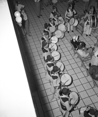 Amarillo's Khiva Temple drum and bugle corps performing in the Westbrook Hotel lobby.