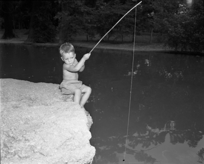 Fishing in Trinity Park's as a good hobby, thought by three year-old Jimmy Smart. Published in Fort Worth Star-Telegram, morning edition August 6, 1950.