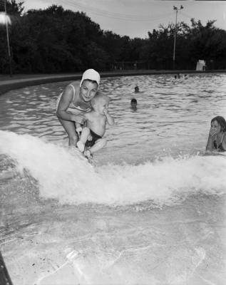 Mrs. J. H. Hass and 18-months-old son David Hass at Forest Park. Published in Fort Worth Star-Telegram, morning edition August 6, 1950.