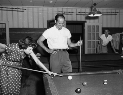 Mr. and Mrs. Johhny Ellis shown playing pool during the Star-Telegram Employees Association Picnic. Mrs. Jane Anne Elise worked in country circulation at the Star-Telegram. Published in August, 1950.