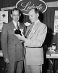 J. K. Williams of Denison, president of the Texas Poultry Improvement Association, and Dr. L. B. Tennison of Pearl River, New York, are shown discussing medical improvements relating to the latest developments in controlling the Newcastle disease that affected poultry, during a convention held by the association. Published in the evening edition, August 7, 1950.