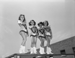 Image shows, left to right, Darla Poss, Katyn Hudson, Tivila Fern McCoy, and Kay Young. The girls are preparing for the recreation department's baton twirling contest that would be held at North Side Recreation Hall. The contest was open to all ages. The girls would also appear in the organization's 20th annual circus, held at La Grave Field. Published in the morning edition, August 11, 1950.