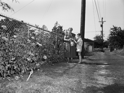 The zinnia bed behind the home of Mrs. J. L. Boswell, of 2118 Loving, brightens the alley and provides fresh flowers for the house. Her son, Larry, took pride in the family gardening projects, which helped keep with Fort Worth's beautification program, sponsored by the Star-Telegram and the Chamber of Commerce. Published in the evening edition, August 10, 1950.
