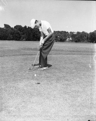 Jerry Gilmartin, left, was being closely watched as match play got under way in the city junior golf championship at Sycamore. He was medalist runner up in qualifying round. Published in Fort Worth Star-Telegram evening edition, August 8, 1950.