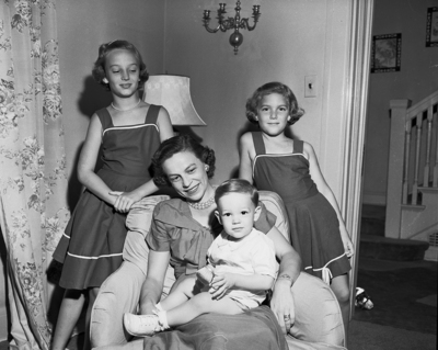Mrs. W. A. Landreth, of 4732 Collinwood, is shown with her children, Bill Jr, Lynda, 10, and Jane, 7,. At the time of the photo, Mrs. Landreth and her daughters, had recently returned from a stay at the Broadmoor in Colorado Springs. Published in the morning edition, August 13, 1950.