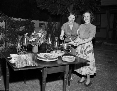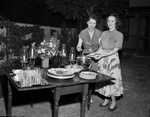 Mrs. Bennett L. Smith, left, of 2529 Stadium, is shown next to bride elect, Miss Beverley Taylor, right. Miss Taylor is the fiancée of Mr. Gordon W. Smith. Published in the morning edition, August 20, 1950.