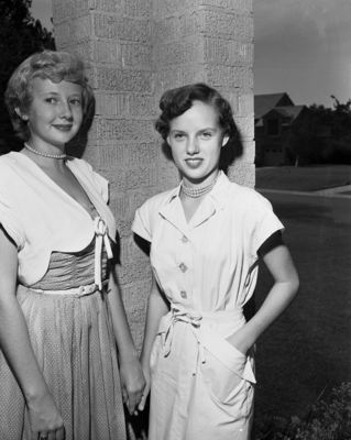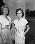 Phyllis Ann Phillips, left, and Gayle Sawyer, both of Levelland, visited Fort Worth. Miss Phillips was the guest of Cynthia Lavender, daughter of Mr. and Mrs. E. W. Lavender, of 3708 Country Club Circle, and Gayle was the guest of Peggy, daughter of Mr. and Mrs. W. Lloyd Sawyer, of 413 Ridgewood, her uncle and aunt. Published in the morning edition, August 14, 1950.