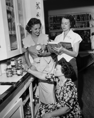 Miss Beth Greene, left, bride elect of W. F. Johnson of Norman Oklahoma, was honored at a party given by Mrs. Earle V. Almy, of 3101 Rogers Road, and her daughter, Miss Helen Ruth Almy. Published in the morning edition, August 20, 1950.