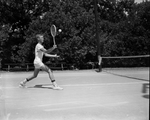 Howard Anderson won his way into city tennis tournament's men's Class B singles finals with victories over Jim Wilson and Bayard Friedman. He meets Donald Moore. Published in Fort Worth Star-Telegram morning edition, August 14, 1950.
