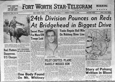 Fort Worth Star-Telegram front page on August 14, 1950 feature Korean War articles.