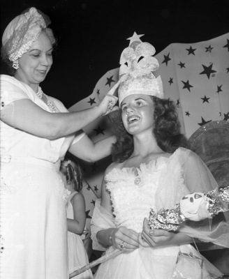 Gloria Horgan being crowned as queen of Recreation Department circus, Fort Worth, Texas, Image shows 15-year-old Gloria Horgan who was crowned "Circus Queen" at the Fort Worth Recreation Department's 20th annual circus. Published in the evening edition, August 16, 1950.