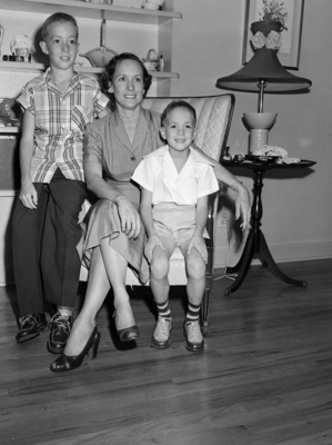 Mrs. Maurice Price and her sons, Maurice Junior, left, and Alan Beall, have moved to Sherman with Mr. Price to make their home. The family formerly lived at 3552 Westcliff Road S. Published in Fort Worth Star-Telegram evening edition August 21, 1950.