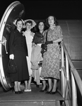 Image shows four young women, each perspective brides of members of the Fort Worth Cats. They arrived in Fort Worth by plane earlier in the week prior to the photo's publication. The young women, left to right are Marilee Coor, fiancée of Joe Torpey; Phyllis June Warner, fiancée of Don Hoak; Patricia Ann Thayer, fiancée of Russ Rose; and Martha Jo Day, fiancée of John Rutherford. The four weddings would be held at La Grave Field, preceding a Fort Worth-Oklahoma City game. Published in the Fort Worth Star-Telegram morning edition, August 17, 1950.