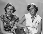 Miss Carol Wayman, left, and Pat Wylie, right, daughters of Mr. and Mrs. L. A. Wayman, of 3900 White Settlement Road, and Mr. and Mrs. O. C. White, of 2113 Carlton. The young women would leave Fort Worth for their freshman years as students at William Woods College in Fulton, Missouri. Published in the Fort Worth Star-Telegram morning edition, August 18, 1950.