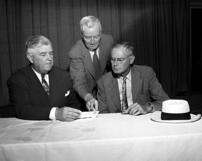 Plans to get out a big vote for Associate Meade F. Griffin, running for Place 3 seat on the Texas Supreme Court, were made by, left to right, J. Cleo Thompson, former Dallas Bar Association president, and Bert Walker and Oliver Fannin of Fort Worth. Published in Fort Worth Star-Telegram morning edition, August 18, 1950.