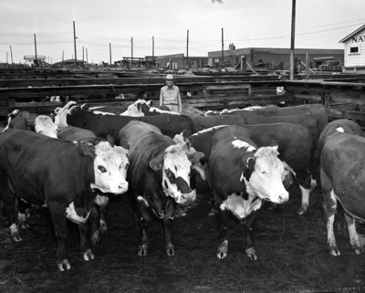 H. H. Flowers of Jacksboro, who for 37 years, has been selling top-grade pasture fattened steers at Fort Worth, sold these 1,186 pounds steers here. Published in Fort Worth Star-Telegram evening edition August 23, 1950.