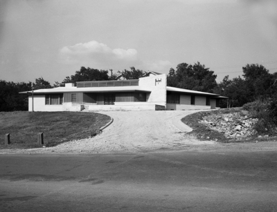 Exterior view of the new home of Mr. and Mrs. D. W. Engert. This image is one of two taken of the new home at 2401 University Drive. This image shows the outdoor view of the house from University Drive. Published in the morning edition, August 27, 1950.