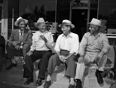 New hot spot of west Texas oil development is Brownfield in Terry County, where new money is pouring in. Four Brownfield citizens who are sharing in new oil money. Left to right are J. G. Louden, T. L. Lowe, W. L. Bandy and Ralph Butcher. Published in Fort Worth Star-Telegram morning edition August 27, 1950.