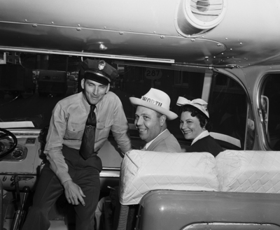 Mr. C. Fred and Mrs. Carolyn Rose Sehnert, of 2136 Morning Glory, await start of trip to Dublin to attend the pre-Madison Square Garden Rodeo with a Fort Worth delegation. Published in Fort Worth Star-Telegram morning edition August 25, 1950.