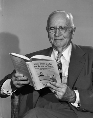 James A. Feagin, Dean of Texas Court Reporters, enjoying his own book too. Published in Fort Worth Star-Telegram morning edition August 27, 1950.
