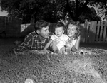 Mr. and Mrs. Ezra "Pat" McGlothin are shown laying in the grass with their fifteen-month-old son, Steven. Mr. McGlothin a pitcher for the Fort Worth Cats, enjoys the family time before the team's final game of the season at La Grave Field, against the Houston Buffs. Published in the evening edition, September 2, 1950.