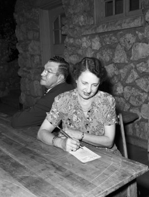 Having cast his own vote, J. Pat Casey, 1105 Texas, a railroad traffic manager, gave Mrs. Casey some privacy as she marked her ballot at the Rotary Park Precinct. Published in Fort Worth Star-Telegram morning edition August 26, 1950.