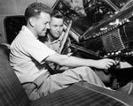 Charles Link, left, shows M. H. Gross the short wave converter he used to find a hidden FM 10-meter transmitter in a radio "treasure hunt". Gross operated the transmitter. Published in Fort Worth Star-Telegram morning edition August 27, 1950.