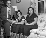 R. E. (Bob) Dysart of Fort Worth, who becomes Lubbock's chief of police is shown with his wife and daughter, Jane Ellen, 12, at their home, 1916 Ashland, soon after Dysart received official notification of his selection. Published in Fort Worth Star-Telegram morning edition August 28, 1950.